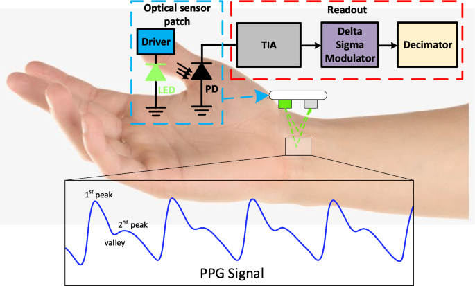 As the heart pumps blood through the body, the volume of blood in the capillaries under the skin changes. This affects how much light is absorbed or reflected back to the photodiodes.